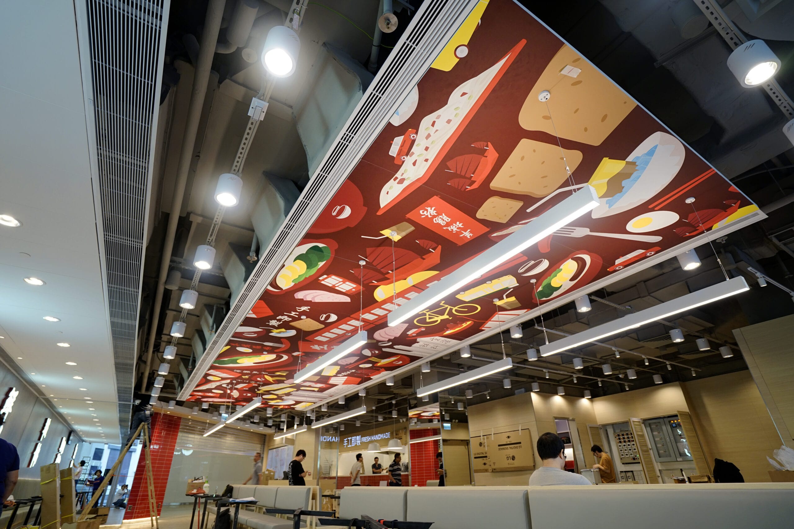 En restaurangkedja i Hongkong valde att skapa en helt ny profil i sina restauranger genom tryck på ett nedpendlat undertak.