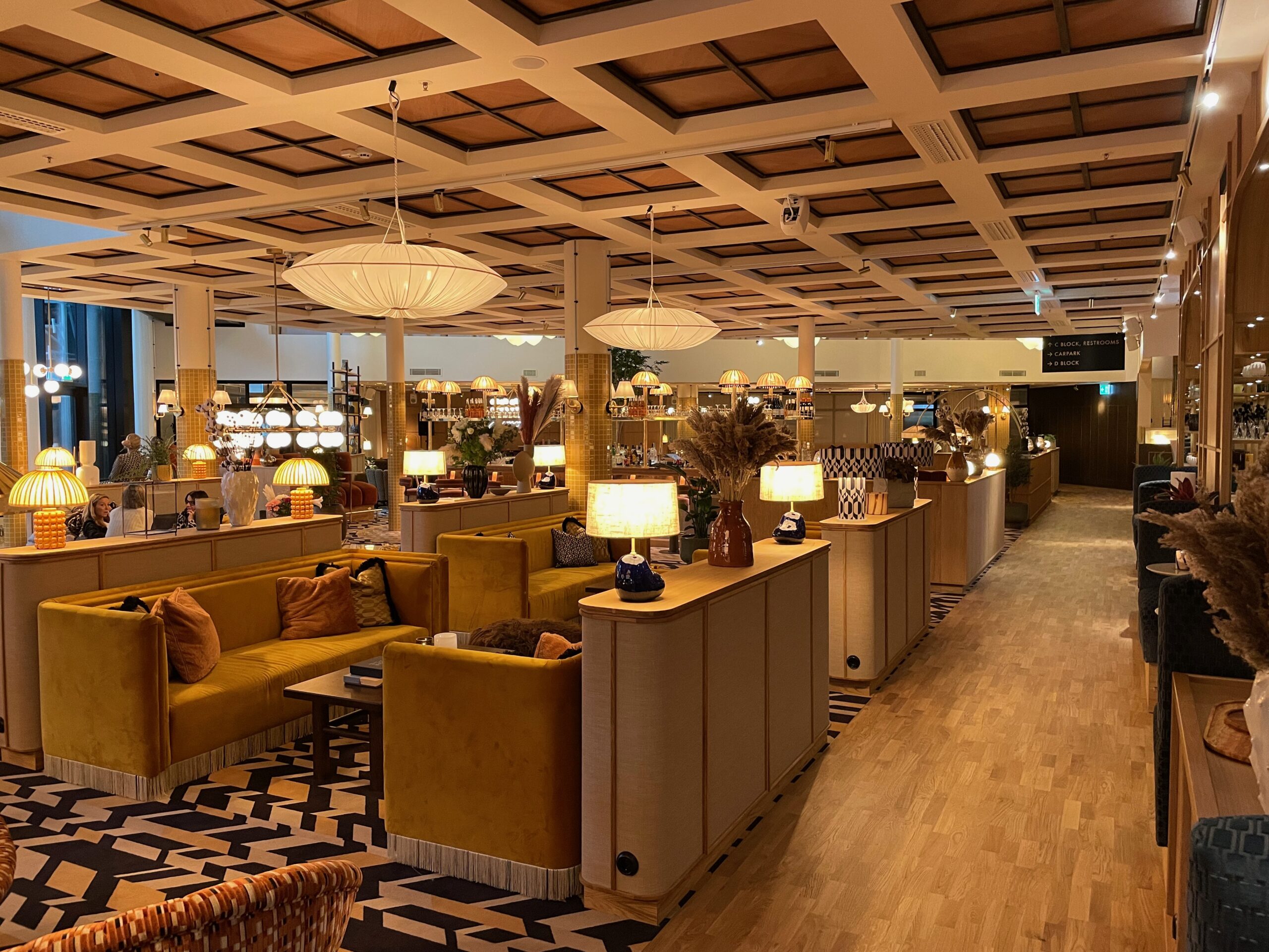 Ess Group som utvecklar hotellkoncept ville inte tumma på ljudkomforten men ville ha ett matchande tak i lobbyn.