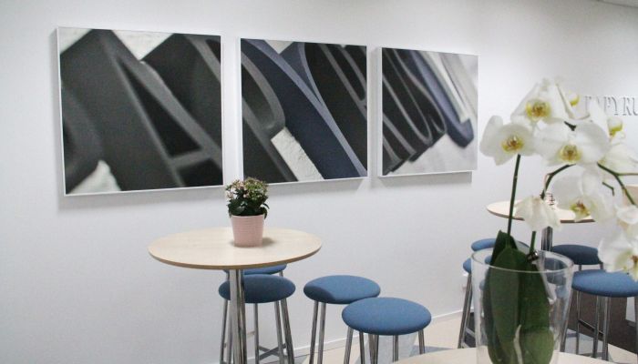 Akustiktryck® trycker direkt på Ecophon Saint-Gobains 40 mm tjocka ljudabsorbenter, med en tryckteknik som bevarar de ljudabsorberande egenskaperna. Absorbenterna består av ljudabsorberande glasull med en speciell vävyta. Med Akustiktryck® får du dessutom högsta brandsäkerhet och kvalitet, enligt vedertagna tester.